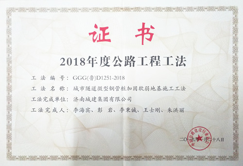 集團(tuán)“城市隧道微型鋼管樁加固軟弱地基施工工法”被評為2018年度公路工程工法