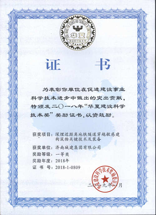 集團《深埋近距離地鐵隧道穿越敏感建構(gòu)物關(guān)鍵技術(shù)及裝備》榮獲華夏建設(shè)科學(xué)技術(shù)獎一等獎