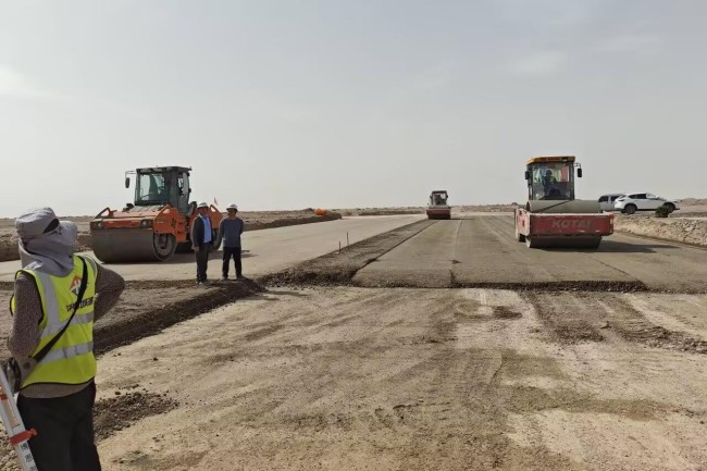 項(xiàng)目團(tuán)隊(duì)在施工過(guò)程中克服了地域差異和風(fēng)沙大等惡劣自然環(huán)境,科學(xué)統(tǒng)籌、加強(qiáng)調(diào)度,與各個(gè)施工班組緊密聯(lián)動(dòng),高效完成各項(xiàng)施工任務(wù)。通過(guò)“人力動(dòng)態(tài)調(diào)配+物資智能儲(chǔ)備”優(yōu)化資源配置,高強(qiáng)度高質(zhì)量高效能施工,施工高峰期時(shí)300輛水穩(wěn)運(yùn)輸車同時(shí)作業(yè)。嚴(yán)格落實(shí)集團(tuán)標(biāo)準(zhǔn)化管理,提前完成路床換填,盡顯項(xiàng)目團(tuán)隊(duì)專業(yè)攻堅(jiān)能力。項(xiàng)目施工遇沙塵暴天氣,項(xiàng)目部全體建設(shè)者主動(dòng)加壓提速,每周進(jìn)度碰頭會(huì)實(shí)時(shí)監(jiān)控進(jìn)展,發(fā)現(xiàn)偏差及時(shí)糾偏,確保各項(xiàng)關(guān)鍵節(jié)點(diǎn)高質(zhì)高效完成。